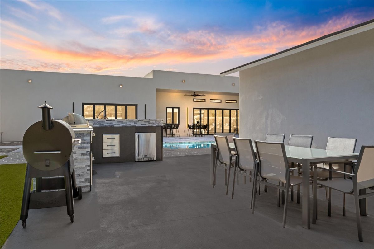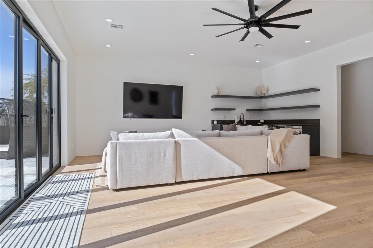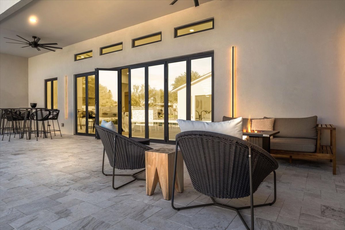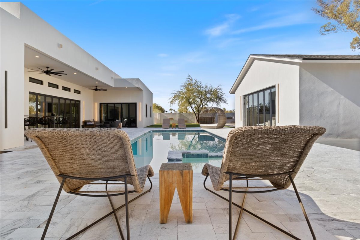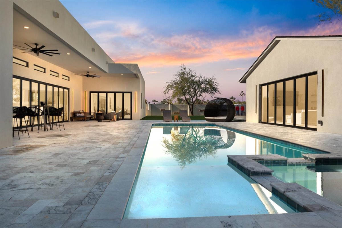 Brand new construction in the heart of Scottsdale's Kierland corridor. Five bedrooms in the main house plus a private casita — each with en-suite bath and walk-in closet. Two living rooms, a double-island chef's kitchen, and nano-door sliding walls that open the entire back of the home to the pool, pickleball court, putting green, in-ground fire pit, and full outdoor kitchen. Less than five minutes from Kierland Commons and The Quarter.